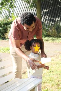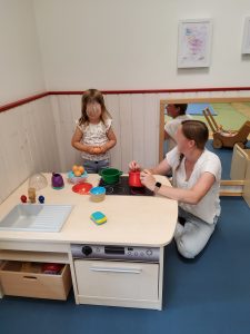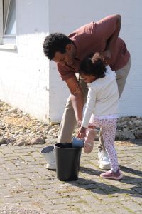 Beim Vater Kind Vormittag hatten die Kinder Zeit ihren Vätern einmal alle Spielmaterialien zu zeigen, die sie gerne nutzen. Auch die Portfolio Mappen konnten angesehen werden, um zu sehen, was die Kinder im Kindergarten alles erlebt haben. Als zusätzliche Aktion konnten Bretter bemalt werden, die einmal unseren Zaun verzieren sollen.