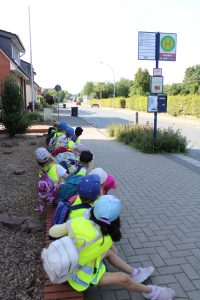 Herr Dierks vom Bezirksdienst hat unseren Wackelzähnen erklärt, wie sie sich richtig im Straßenverkehr verhalten. Vielen Dank für das Gehwegtraining!