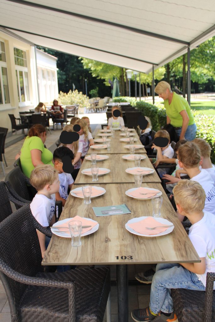 Zur Verabschiedung der Wackelzähne gehört bei uns ein Ausflug. In diesem Jahr fuhren die Kinder mit dem Bus zum Bagno nach Steinfurt. Dort machten sie eine Schnitzeljagd durch den Wald, besichtigten die Konzertgalerie und aßen Pommes im Restaurant.