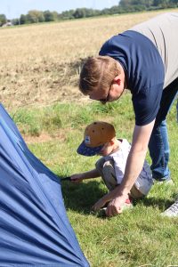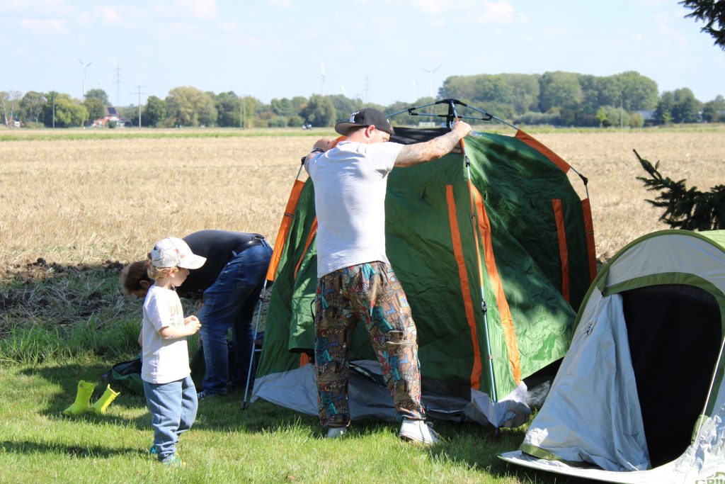 Ein absolutes Highlight im Kindergartenjahr des Wetterhäuschens ist das Vater Kind Zelten. In diesem Jahr kamen 27 Familien bei bestem Wetter zum Hof Cordes nach Laer, um dort ihre Zelte aufzubauen.