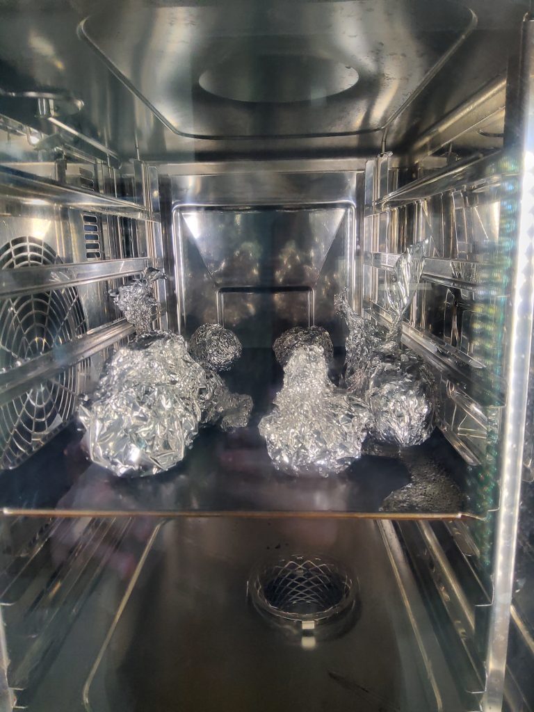 Der Großlieferant für Edelstahlmöbel schafft es nicht die Schränke passend zu liefern. Das heißt, das in der nächsten Woche zwar die tollen Großgeräte von Rational kommen und die Abzugshaube, aber die Schränke, um das Geschirr und sonstiges Zubehör einzuräumen, lässt noch auf sich warten. Das heißt, noch ein wenig weiter improvisieren. Aber darin sind wir ja schon fast Profis.
