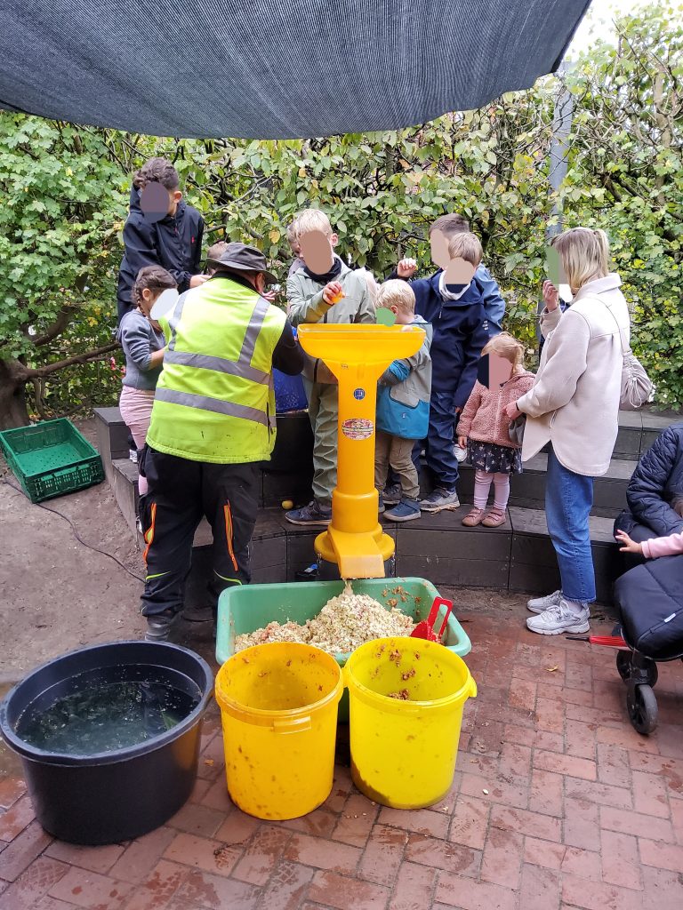 Mit einer Apfelpresse aus dem Kreislehrgarten in Steinfurt konnten wir selbst Apfelsaft herstellen.