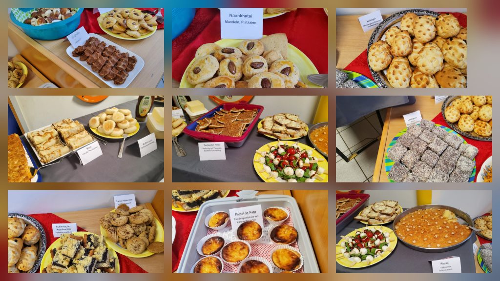 Am Mittwoch fand in der Kita ein Café unter dem Motto: „Naschen rund um den Globus“ statt. Familien und KollegInnen brachten Speisen aus den unterschiedlichsten Ländern mit und es fanden sich zahlreiche Besucher ein, um diese zu genießen.