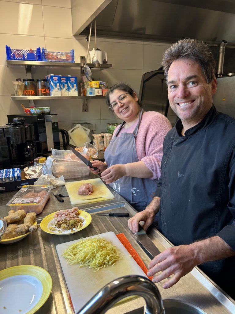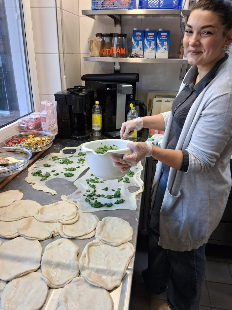 In der letzten Woche kamen Mütter zu uns in die Einrichtung, um mit Dave leckere Gerichte aus ihren Heimatländern zu kochen. Es gab pakistanisches Ginger Chicken, kosovarische Pita, eritreische Pfannkuchen mit vielen Beilagen, australisches Meat Pie und türkische Linsensuppe mit Fladenbrot.