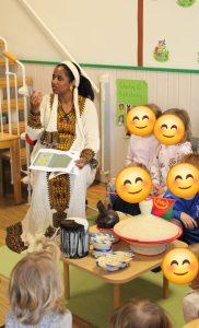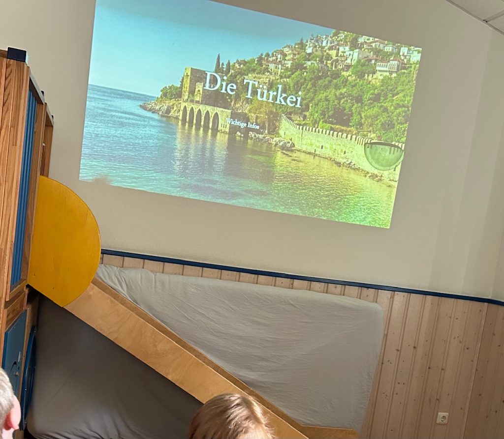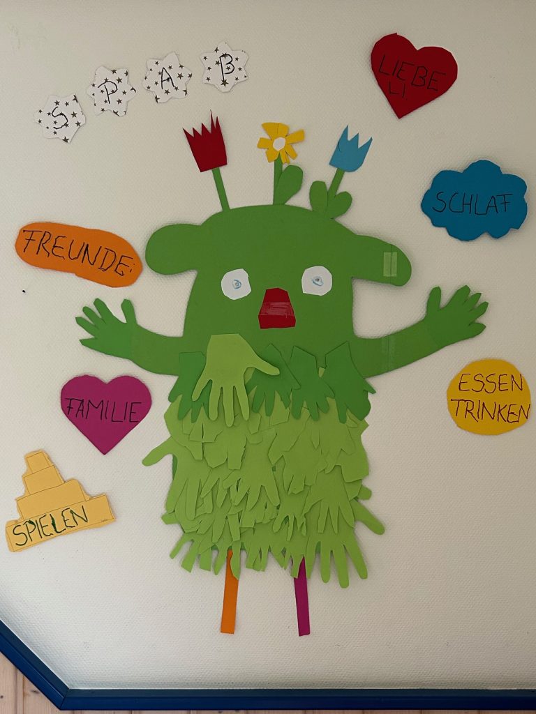 Hier sind interessante Gespräche entstanden über die Entfernungen, die auf der Weltkarte ja ganz nah aussehen. Zudem wurden viele Lieder gesungen, gebastelt und Bilderbücher zu den unterschiedlichen Kulturen angesehen.