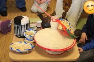 Am Freitag wurden wir dann noch bei unserem Forschertag unterstützt. Eine Mutter kam in ihren Ländertracht und erzählten über ihre Heimat, brachte viele Gegenstände zum Anschauen mit und tanzte sogar mit den Kindern. Eine Mutter hatte eine Präsentation über die Türkei erstellt und zeigte mit vielen Bildern die Vielseitigkeit ihres Landes. Zwei Mütter zeigten an verschiedenen Gegenständen aus dem Alltag der Kinder, wie unterschiedliche Sprache sein kann.